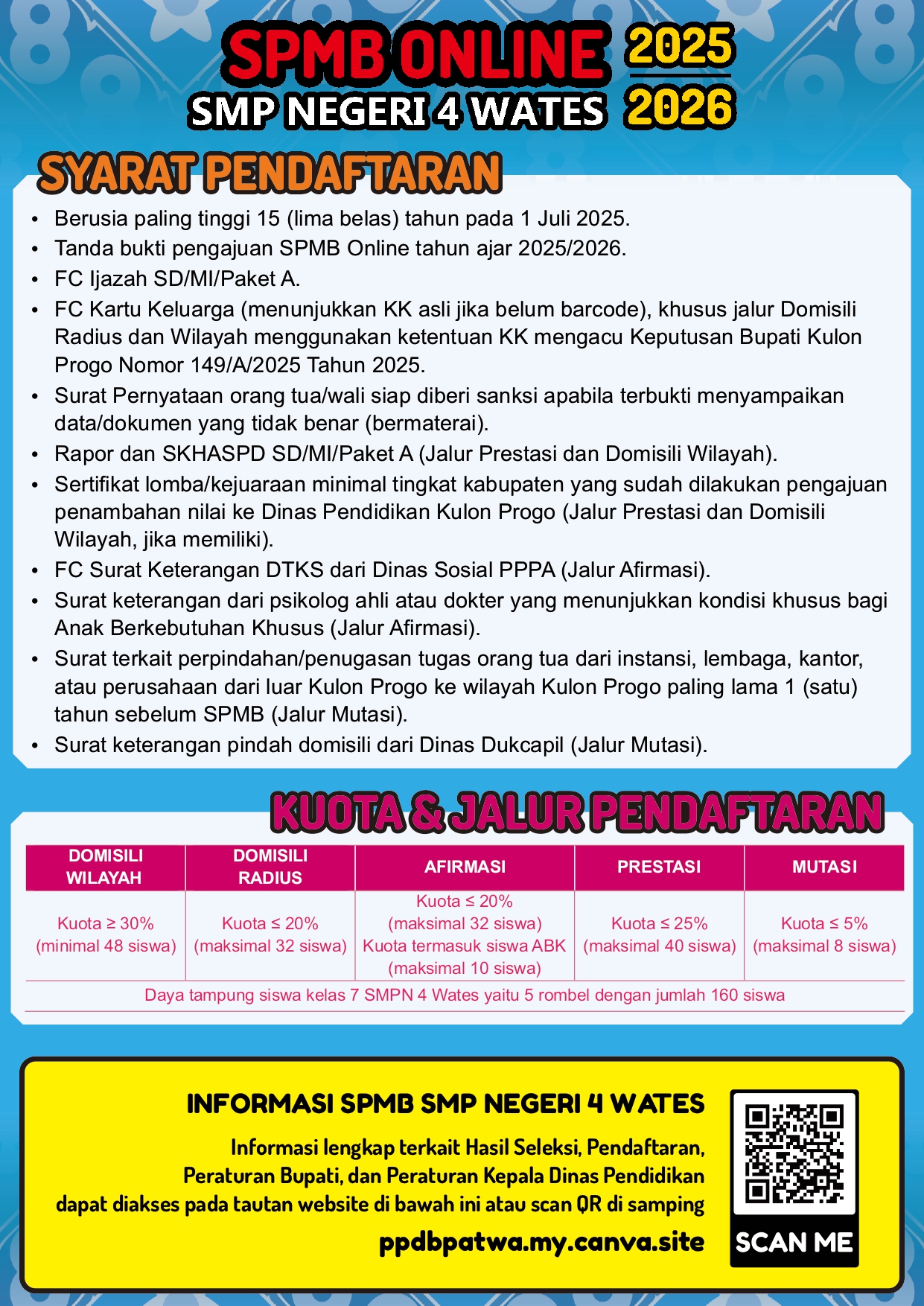 Info SPMB SMP Negeri 4 Wates TP. 2025/2026
